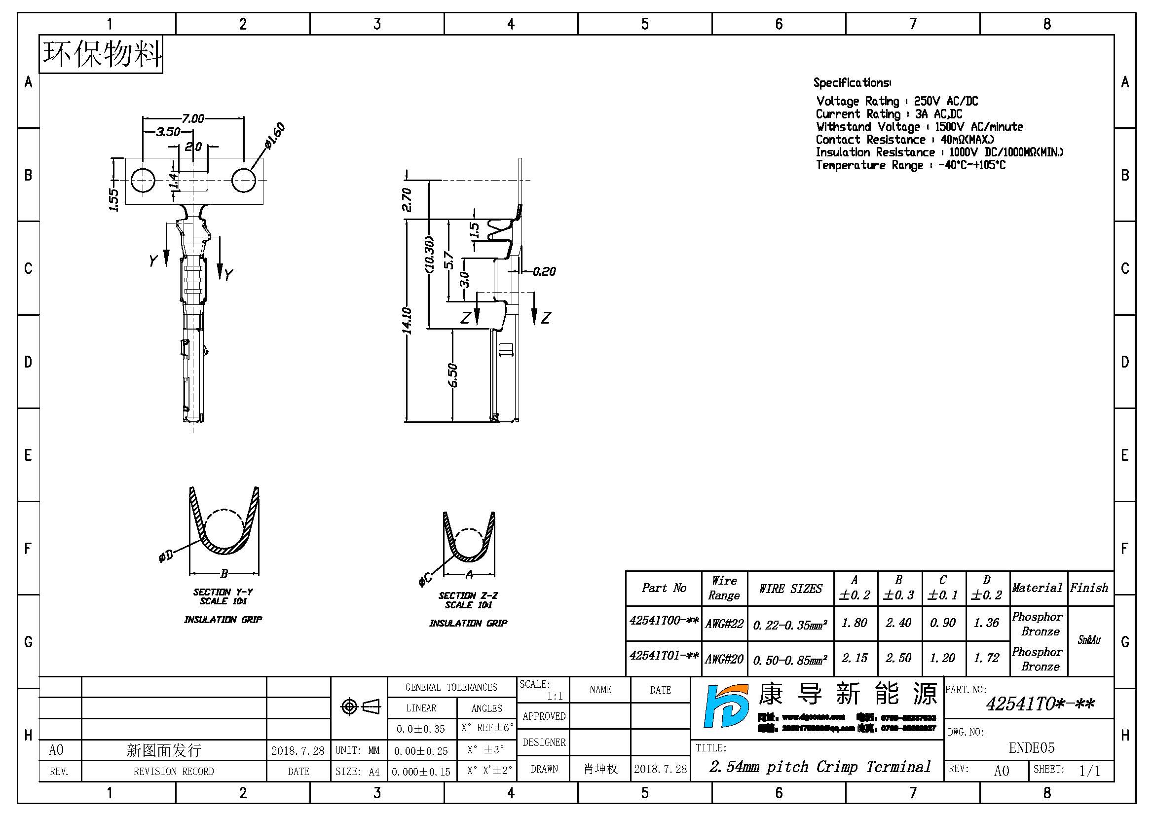 規格型號:PH:2.54MM L:14.10MM AWG20#-24# 線端母端子