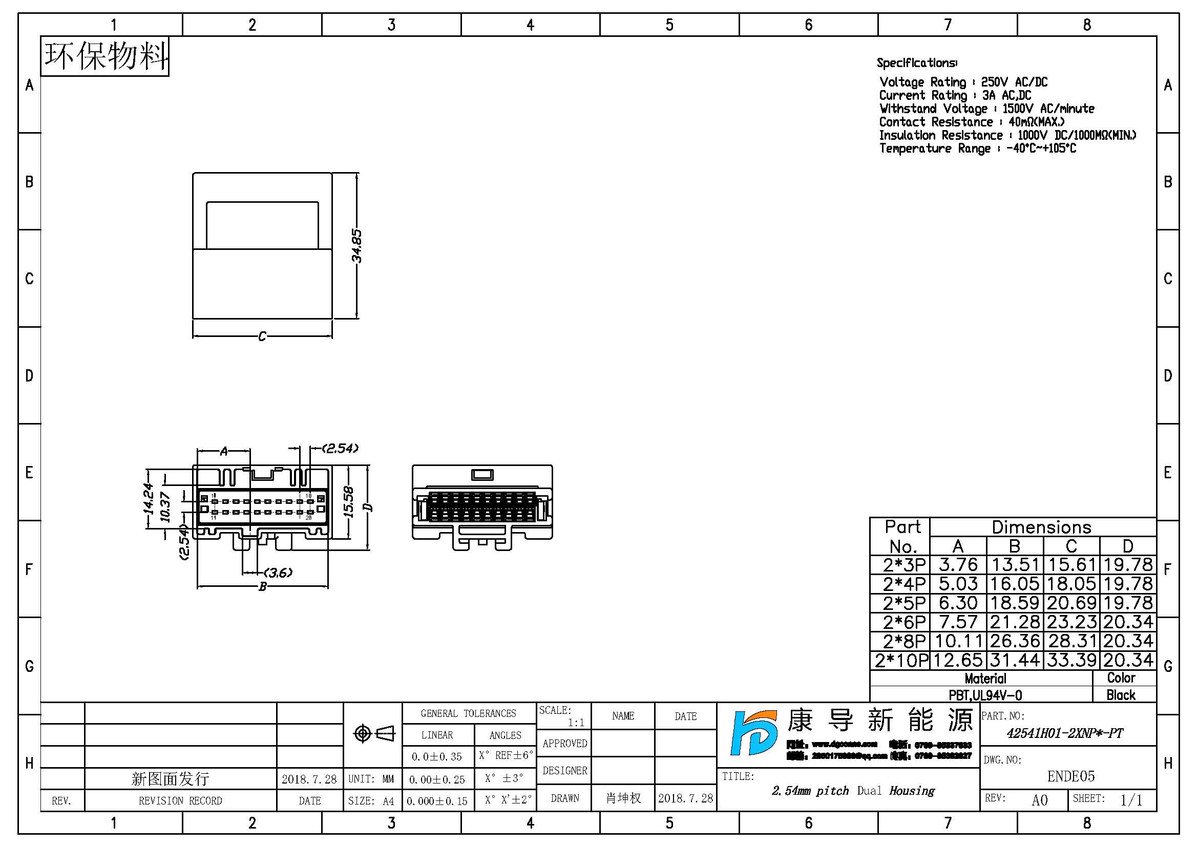 產品行距:2.54MM