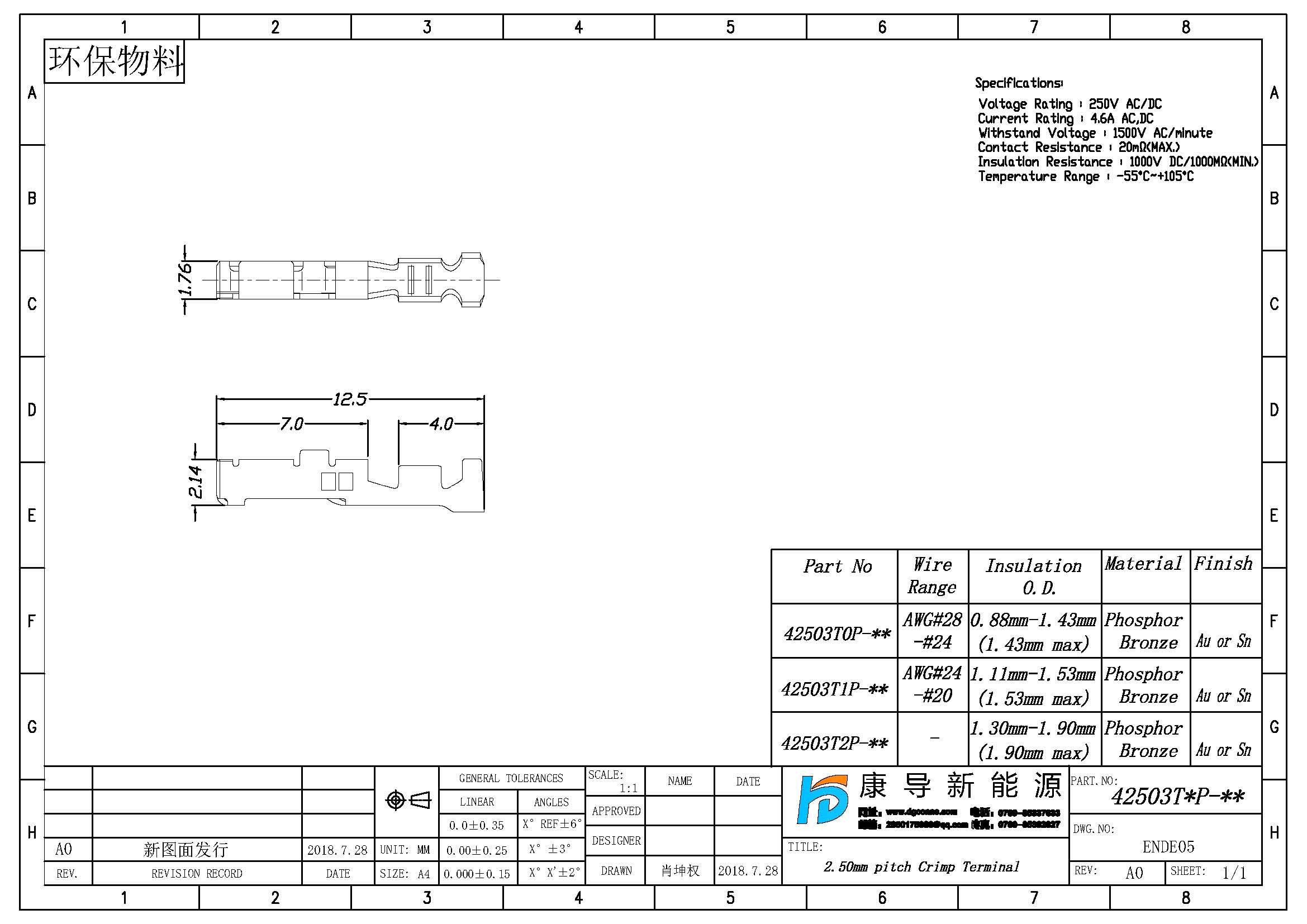 產品間距:2.50MM