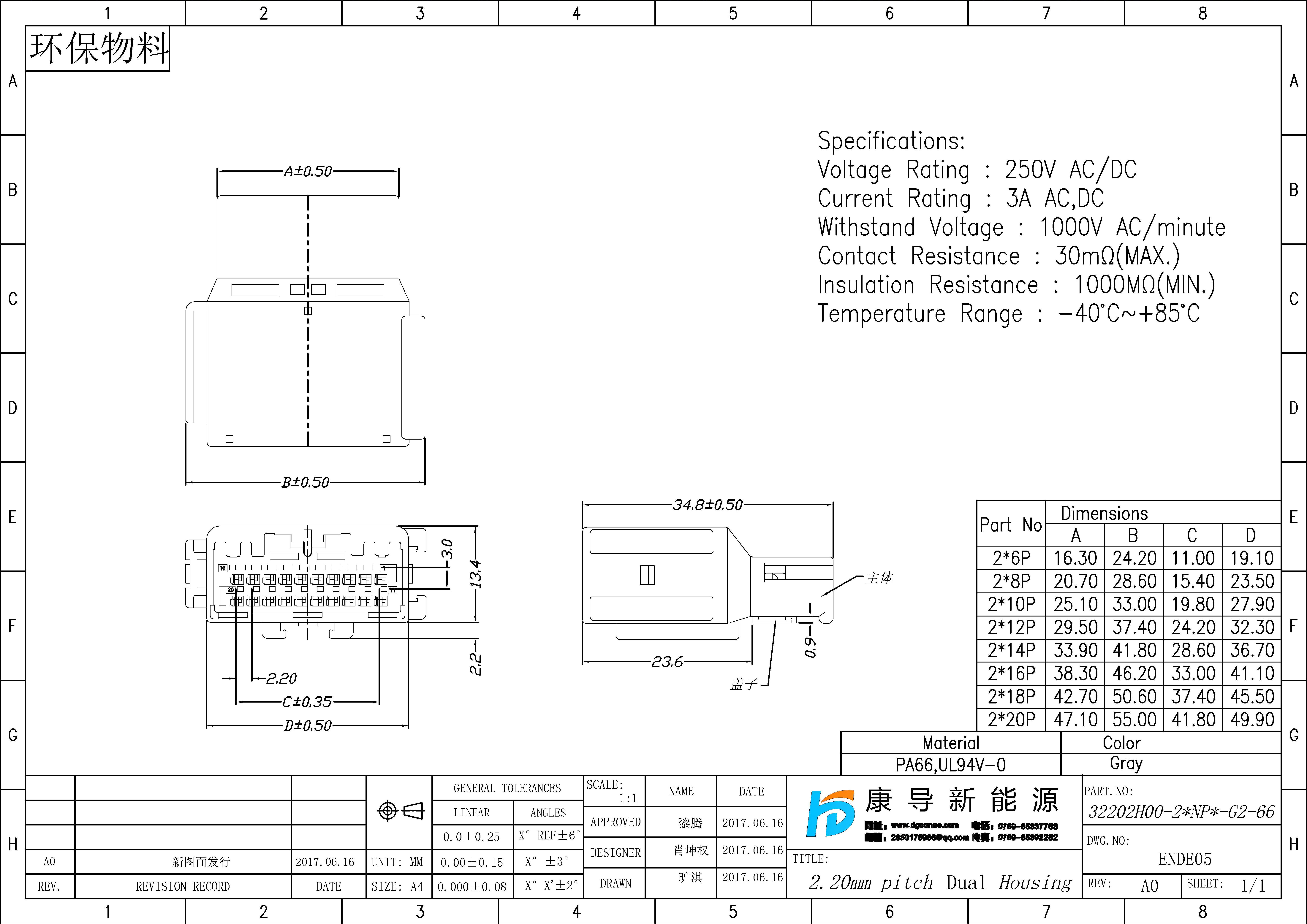 規格型號:PH:2.20MM H:34.80MM 2*NP 線端母殼