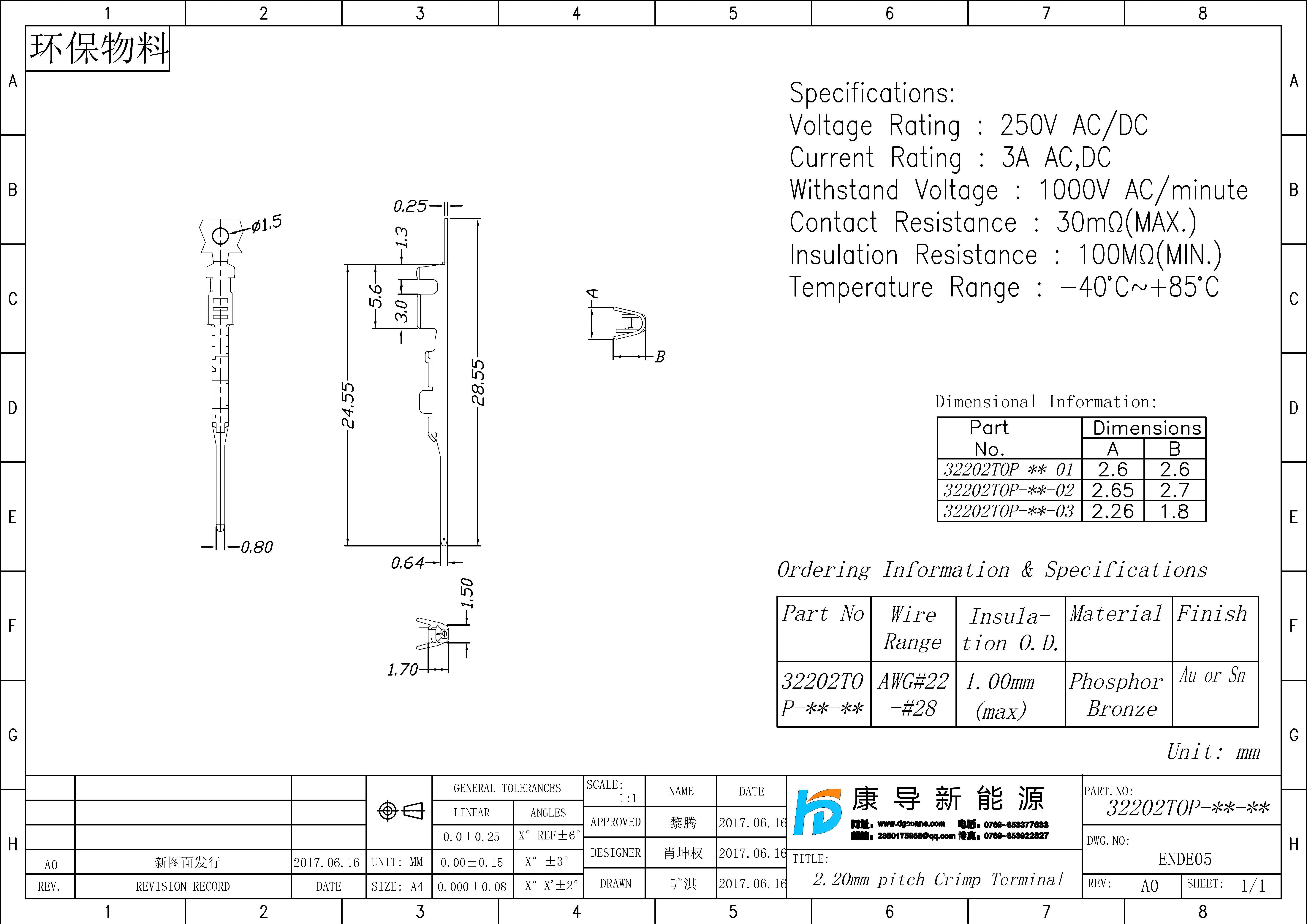 規格型號:PH:2.20MM L:24.55MM AWG22#-AWG28# 線端公端子
