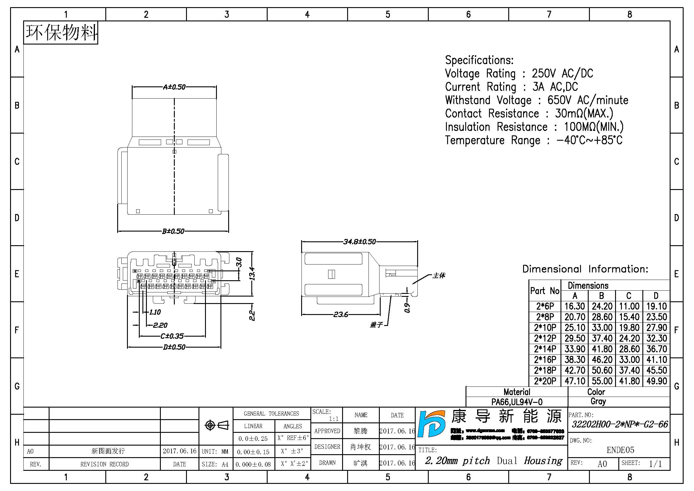 規格型號:PH:2.20MM H:34.80MM 2*NP 線端母殼