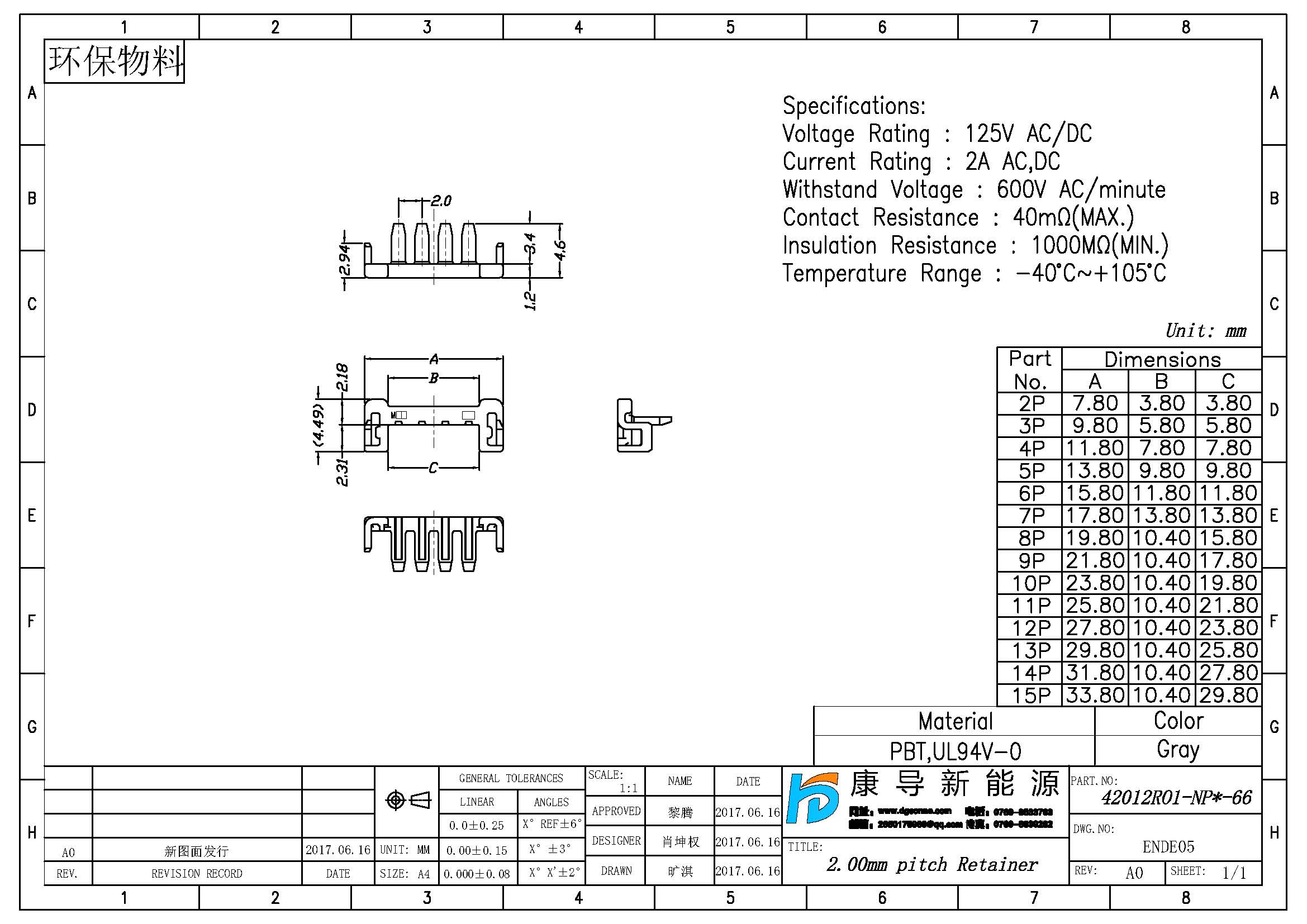 規格型號:PH:2.00MM H:4.60MM 1*NP 定位塞
