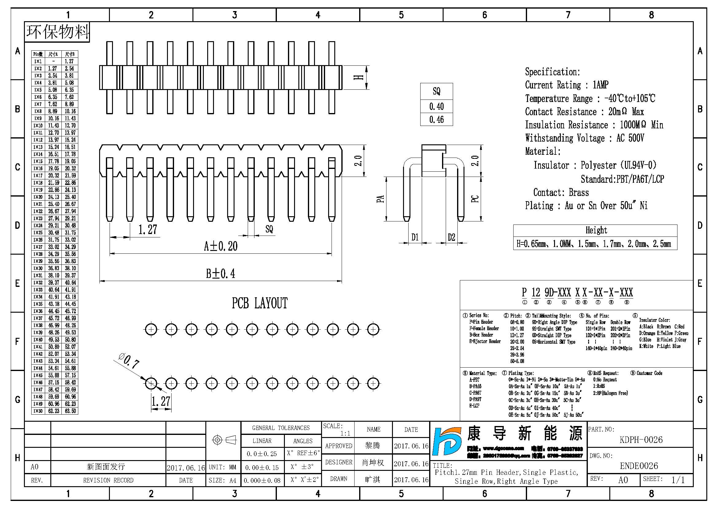 塑膠高度:0.85/1.0/1.5/1.7/2.0/2.54MM