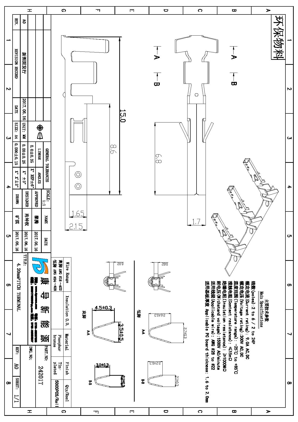 規格型號:4.20MM間距 端子