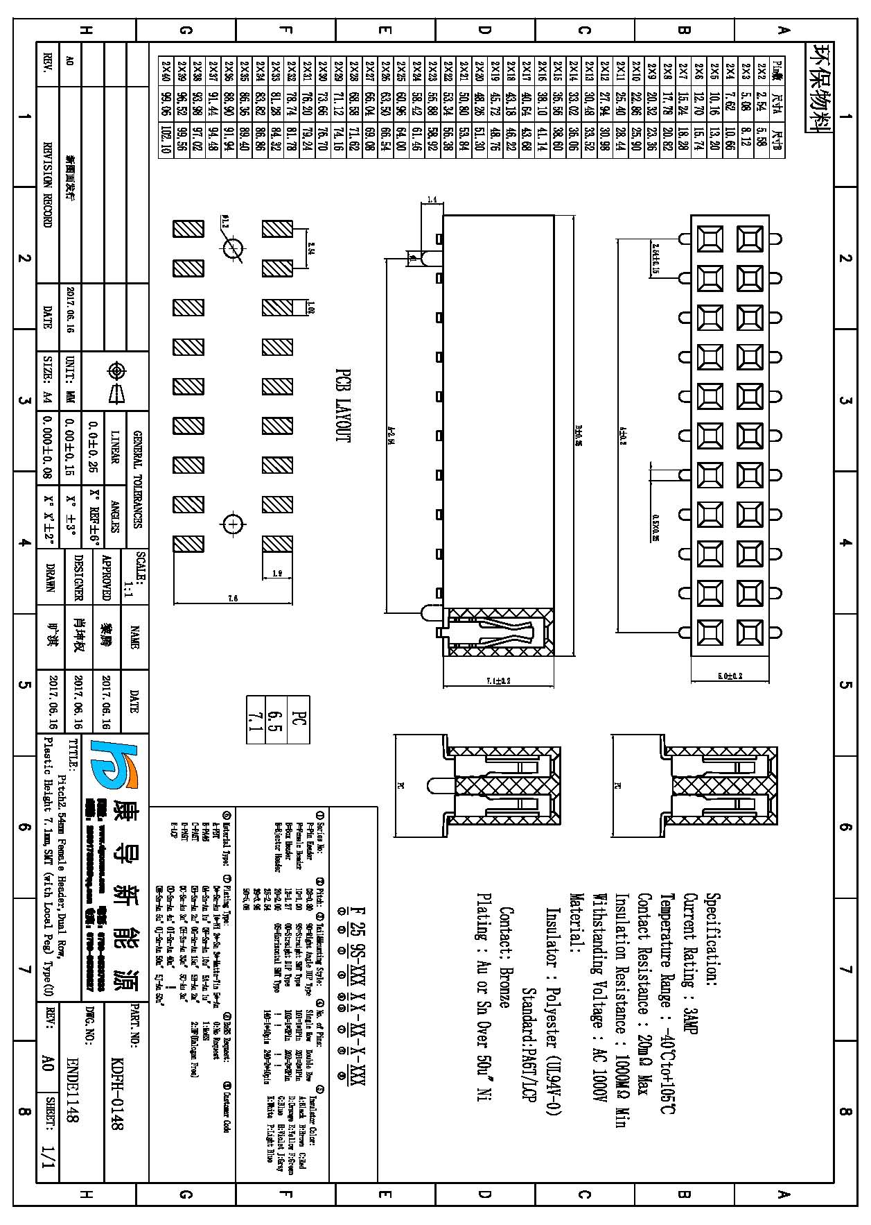 規格型號:FH:2.54MM H:7.1MM 2*NP SMT U端