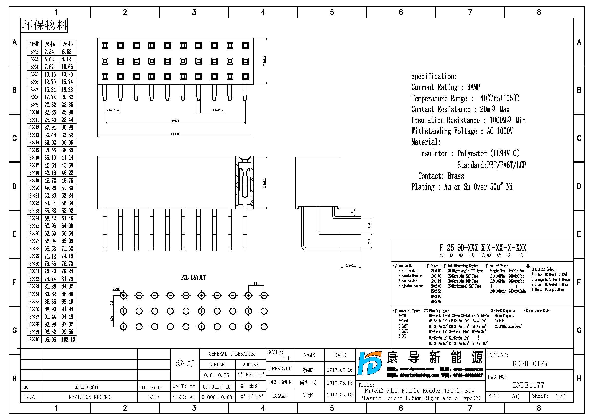 規格型號:FH:2.54MM H:8.5MM 3*NP 90度 Y端