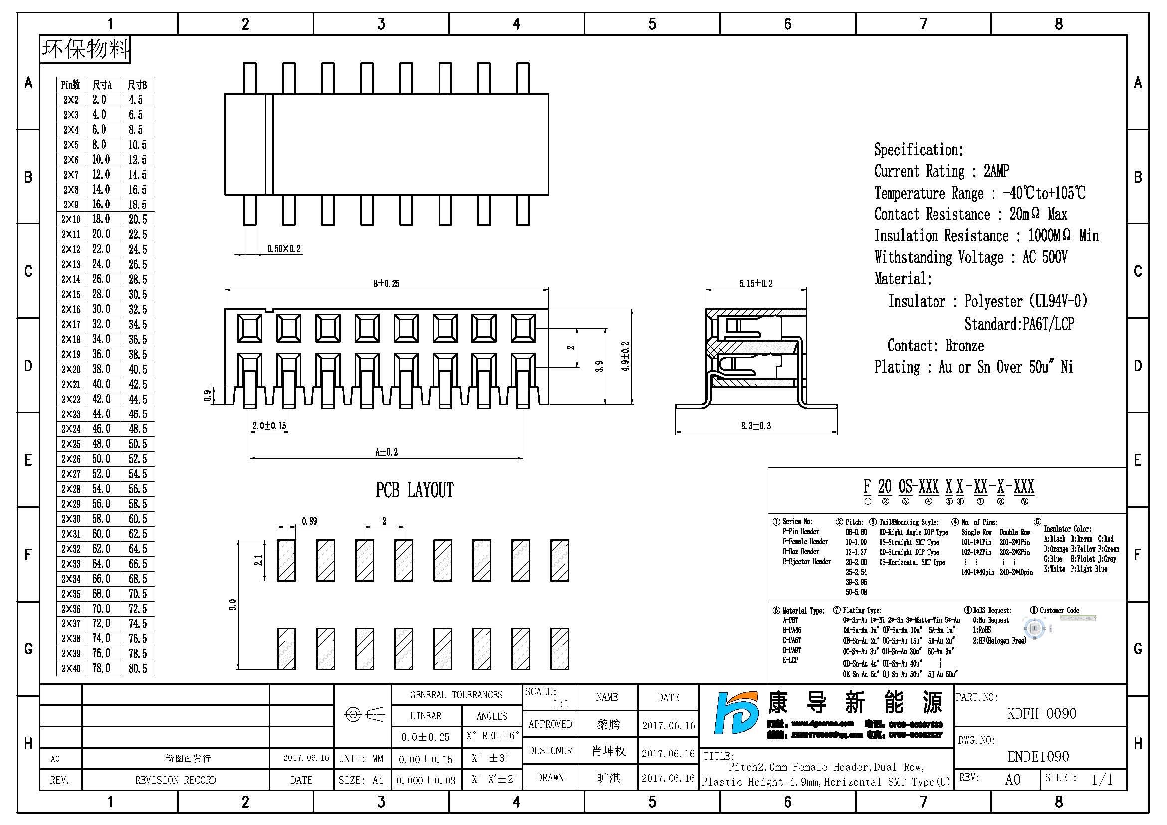 產品名稱:2.0MM排母