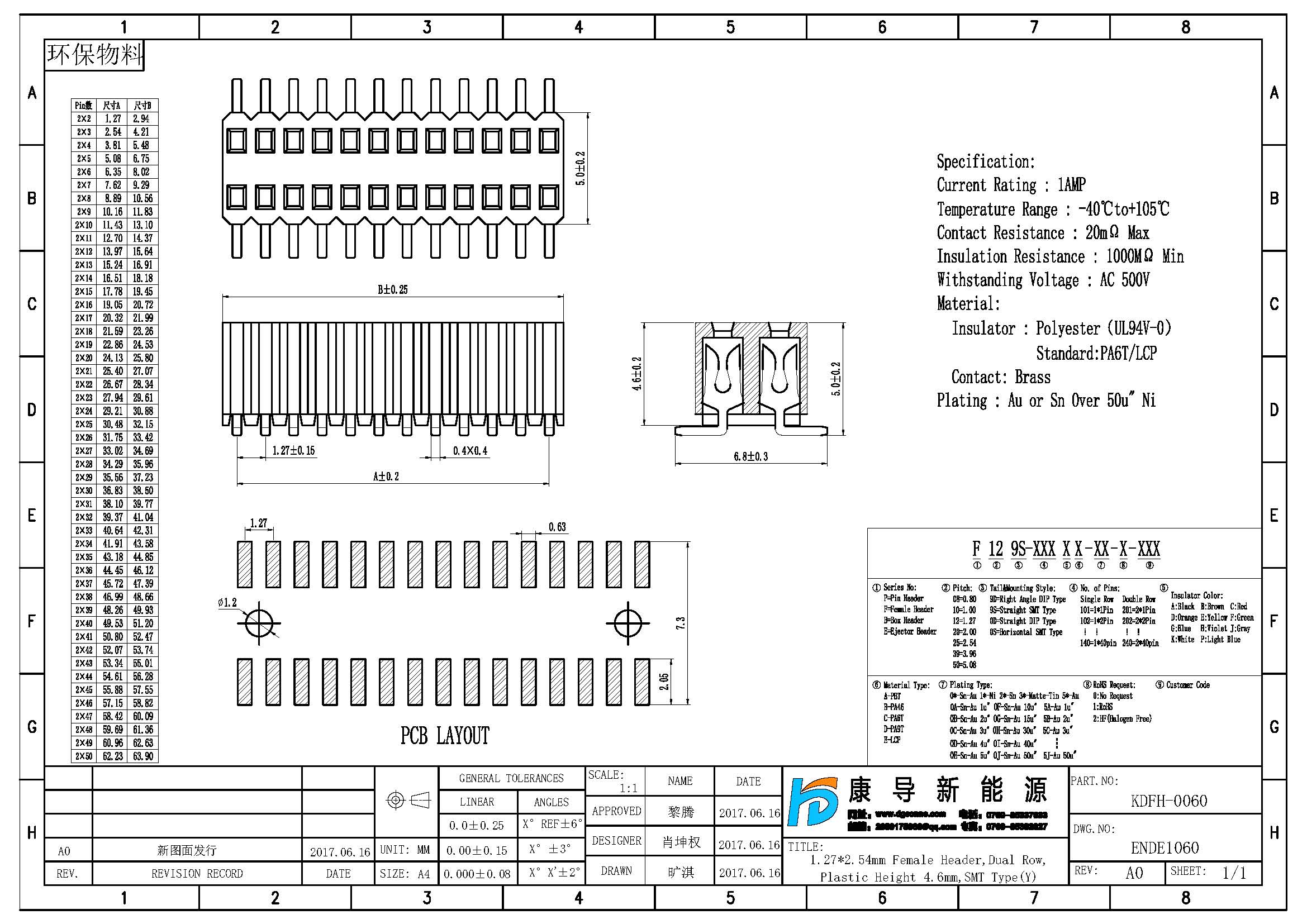 規格型號:FH:1.27*2.54MM H:4.6MM 2*NP SMT Y端