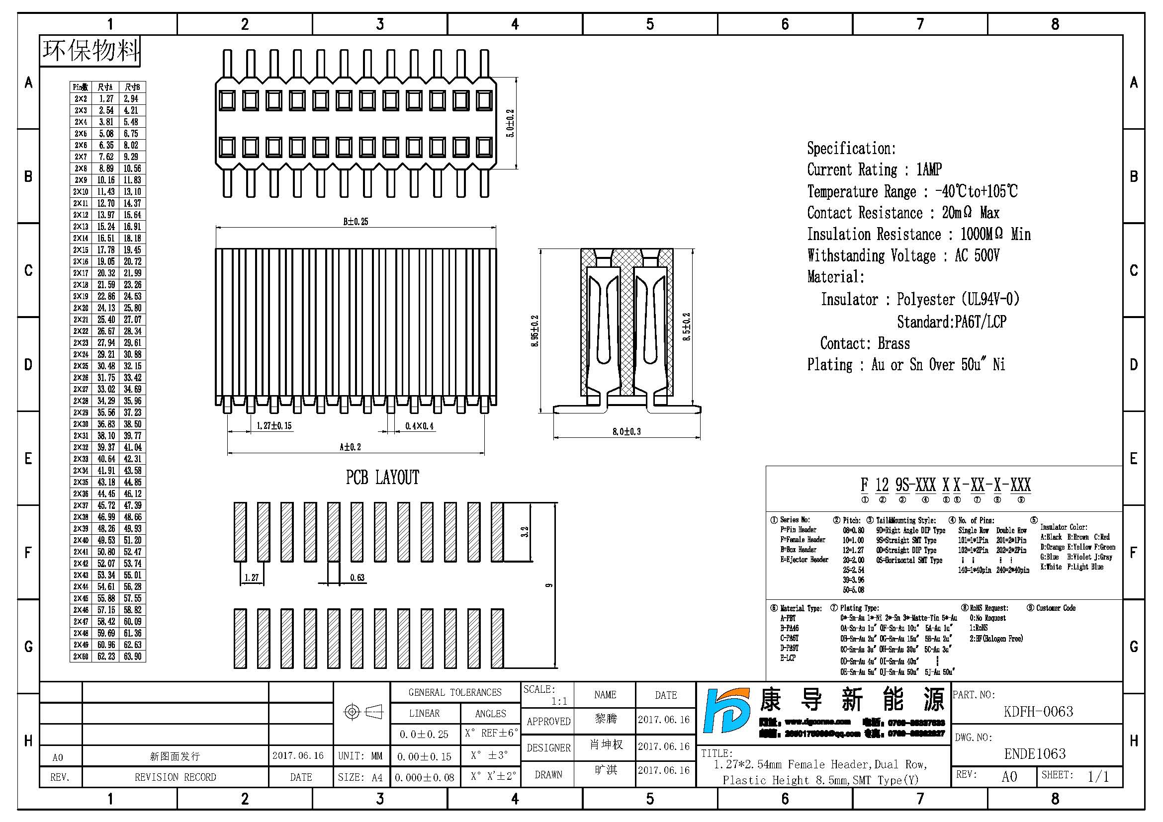 規格型號:FH:1.27*2.54MM H:8.5MM 2*NP SMT Y端