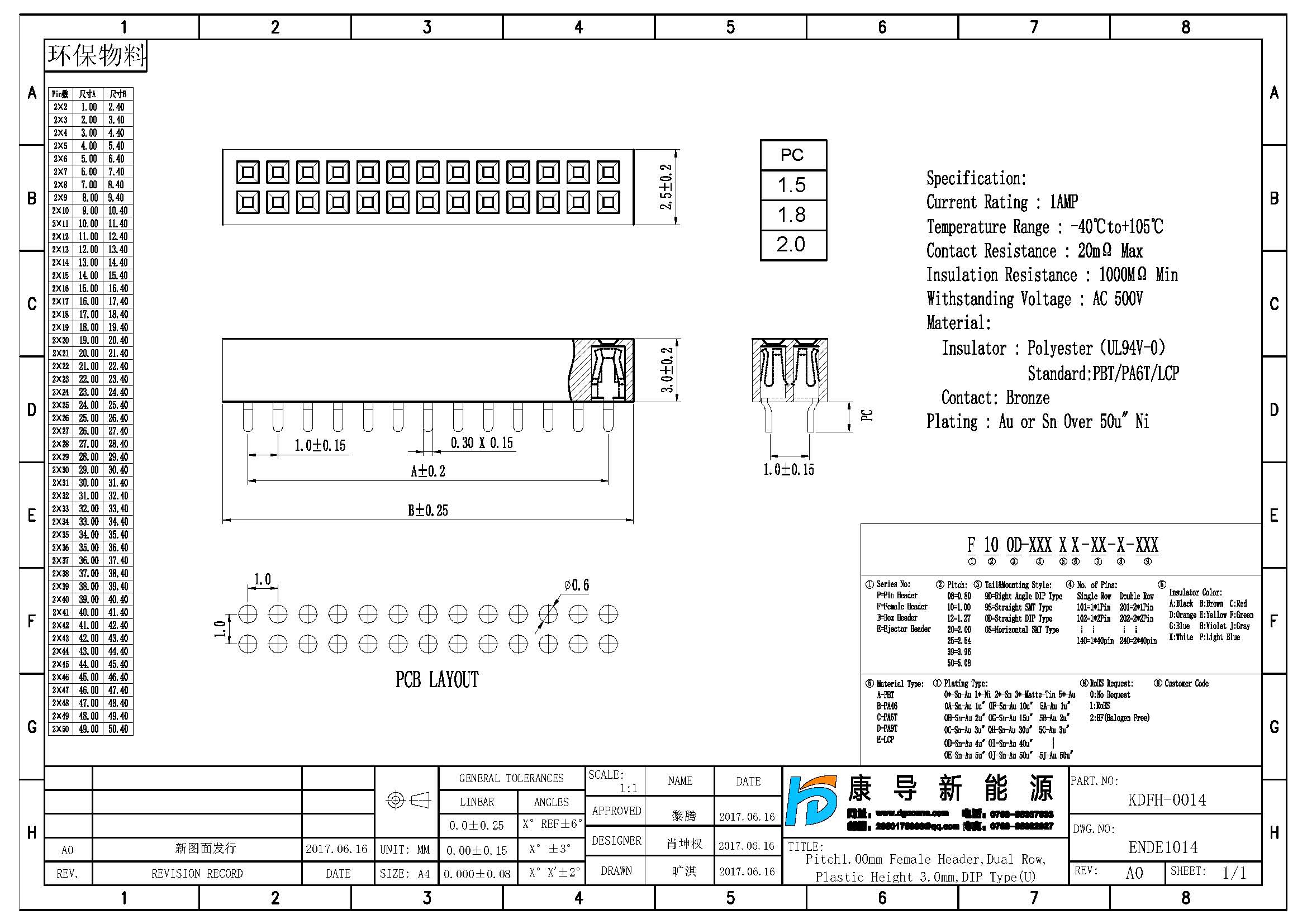 產品名稱:1.0MM排母