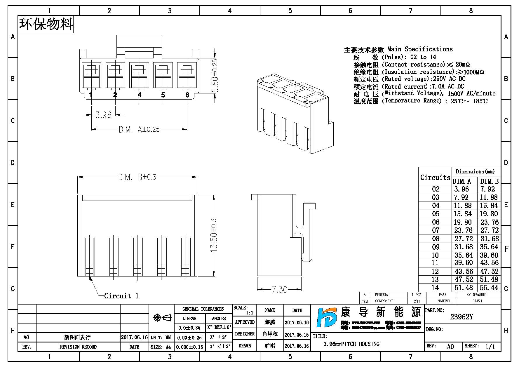 規格型號:VH:3.96MM H:13.50MM 1*NP 線端公殼