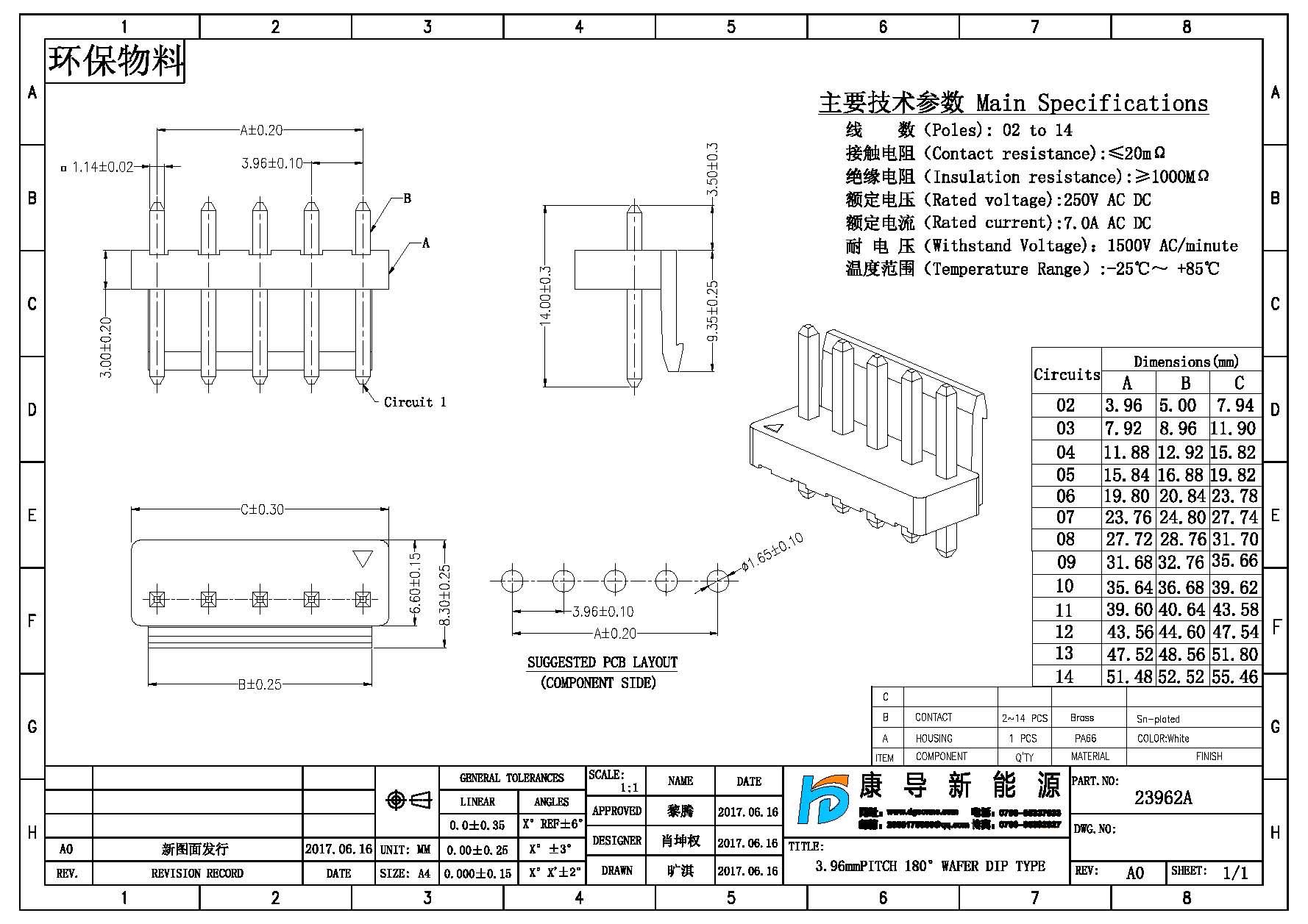產品間距:3.96MM