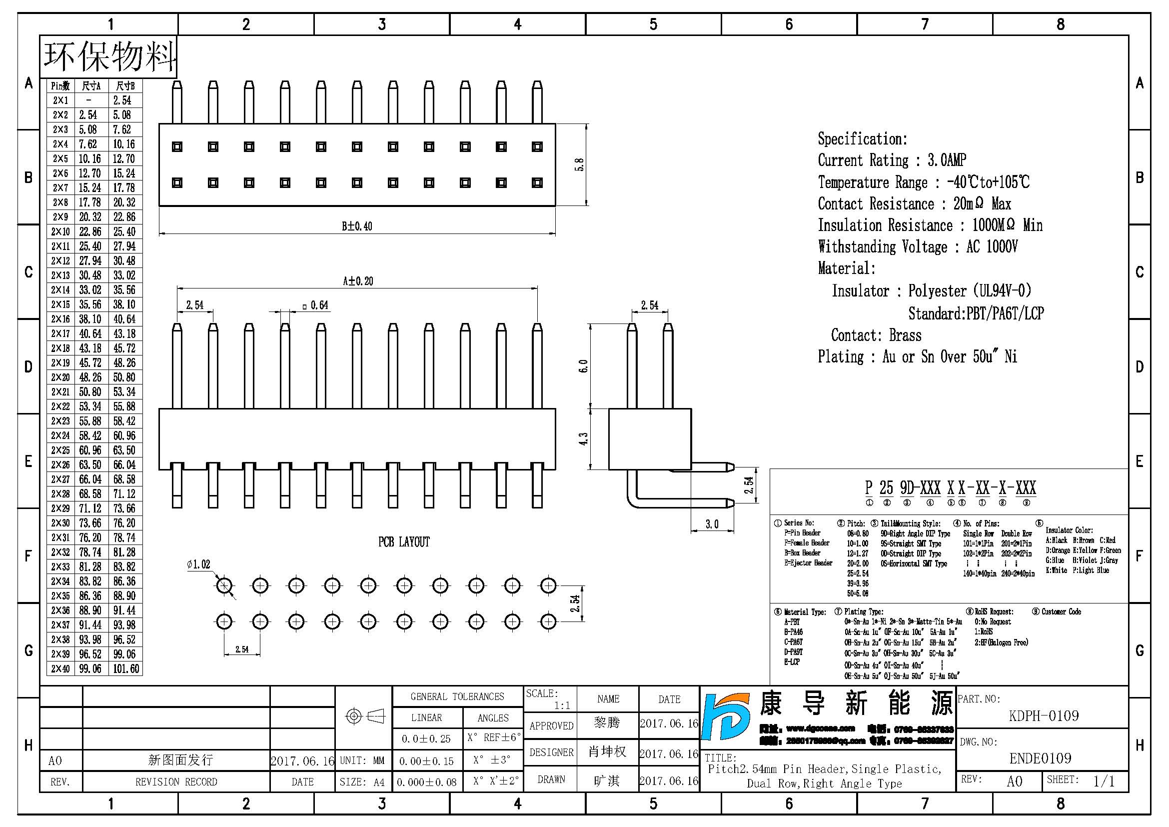 產品行距:2.54MM
