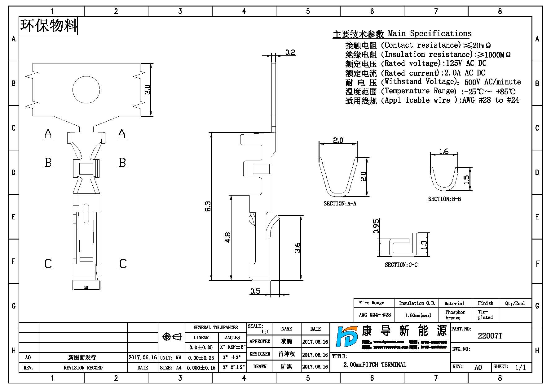 規格型號:PH:2.0MM L:8.30MM AWG24#-AWG28# 線端母端子