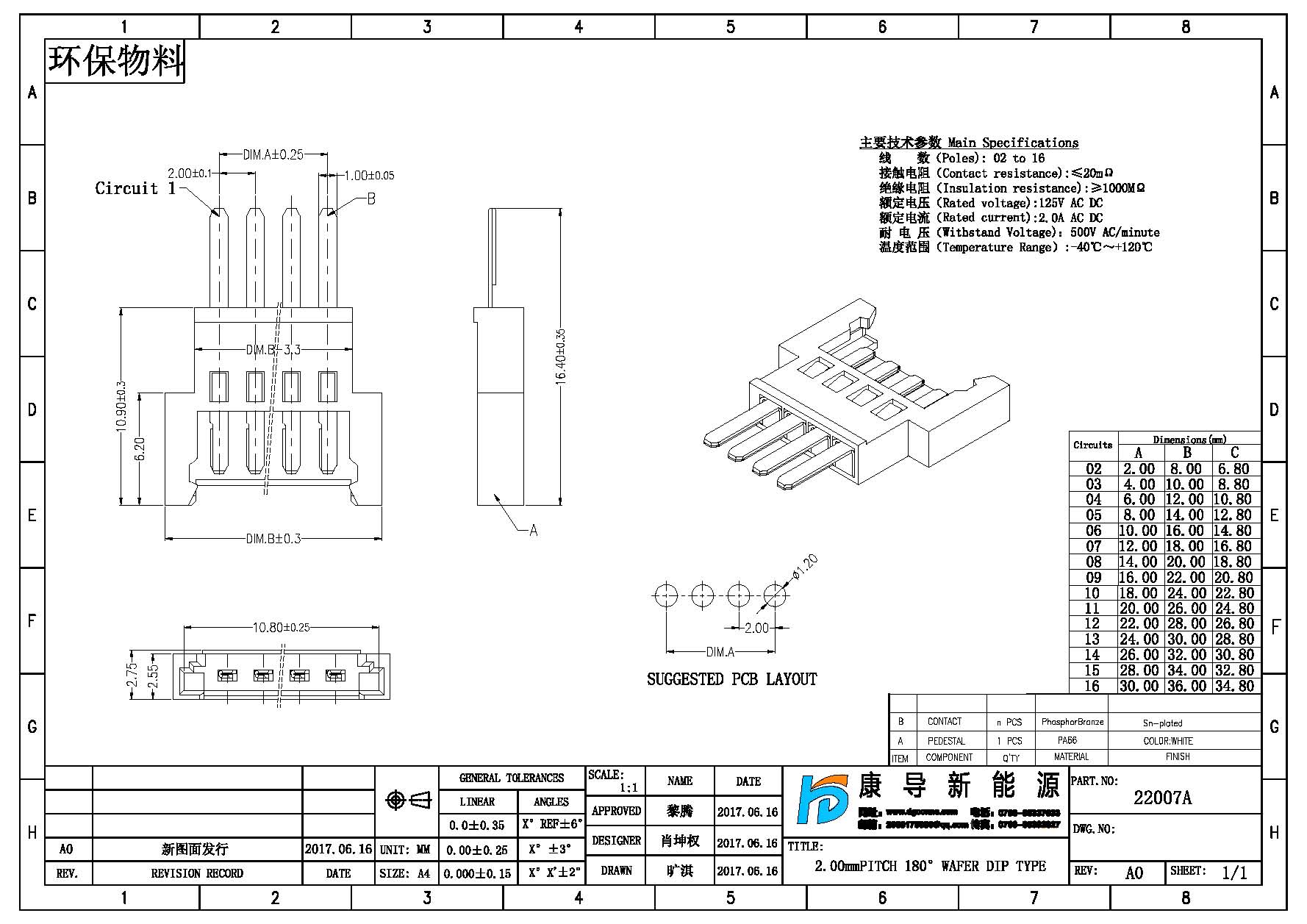 規格型號:PH:2.0MM H:10.90MM 1*NP 180度