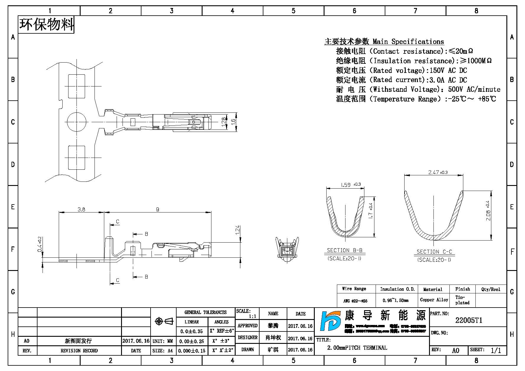 規格型號:PH:2.0MM L:9.0MM AWG22#-AWG26# 線端母端子