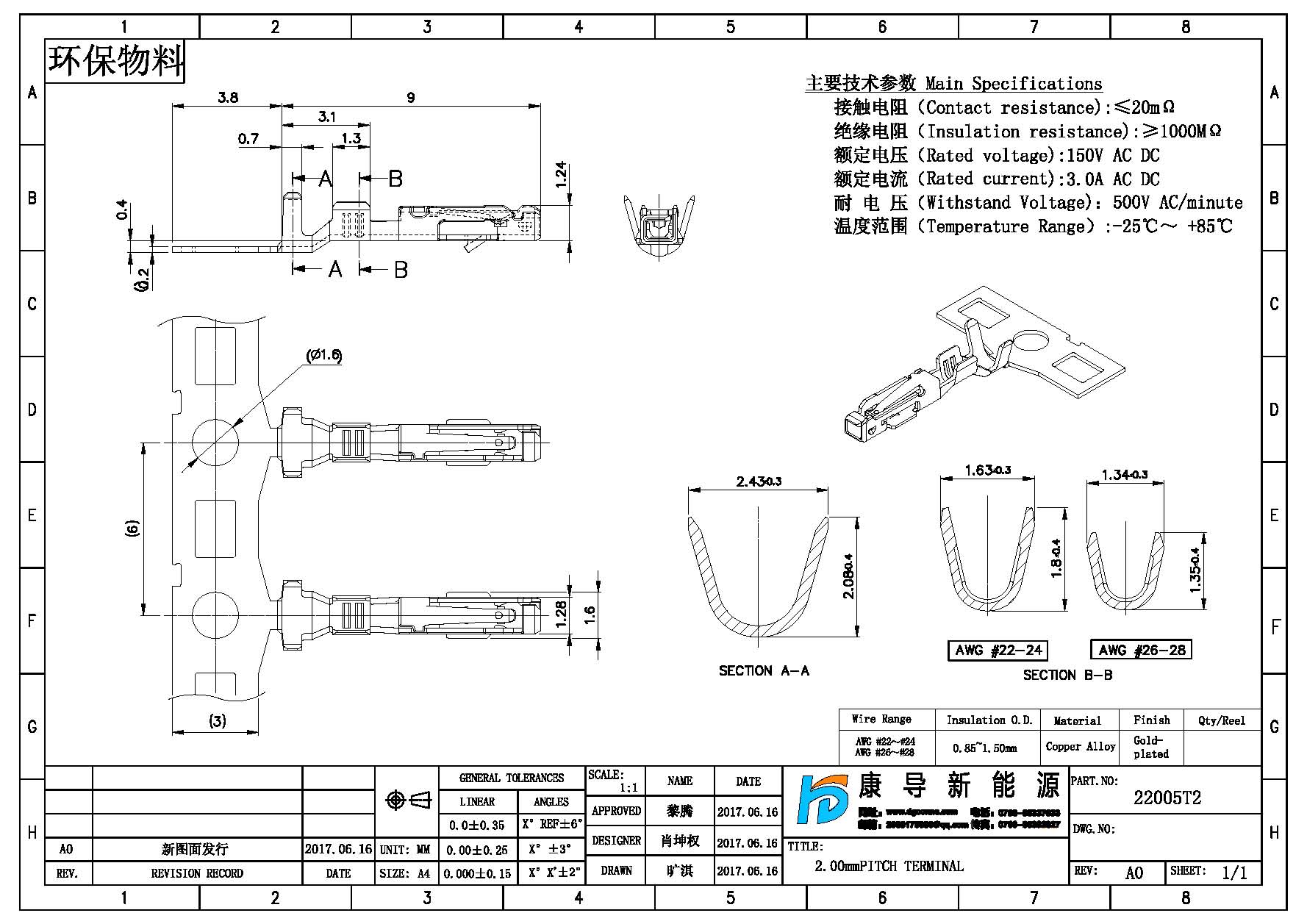 裝線大小:AWG22#-AWG28#