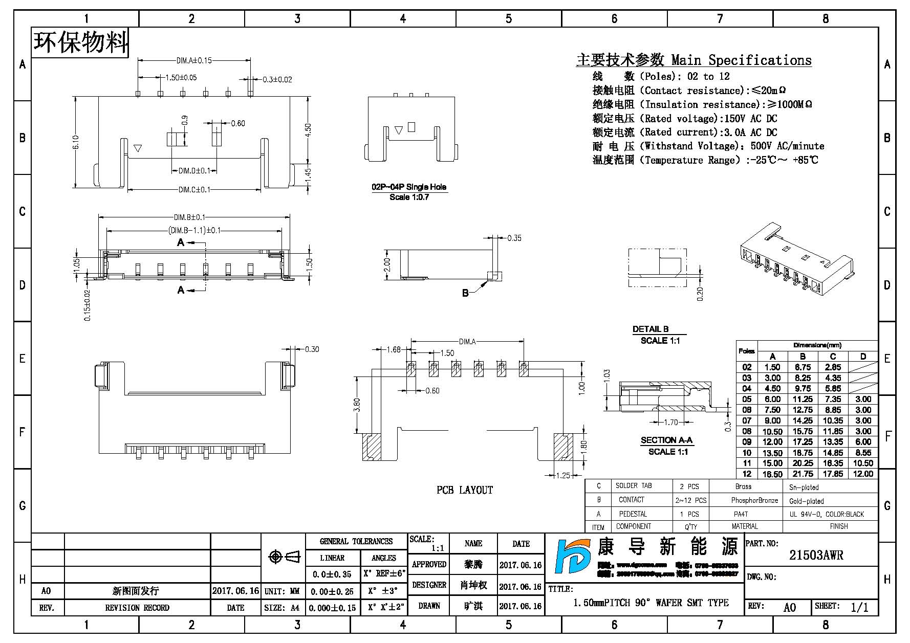 規格型號:PH:1.5MM H:2.00MM 1*NP 臥貼