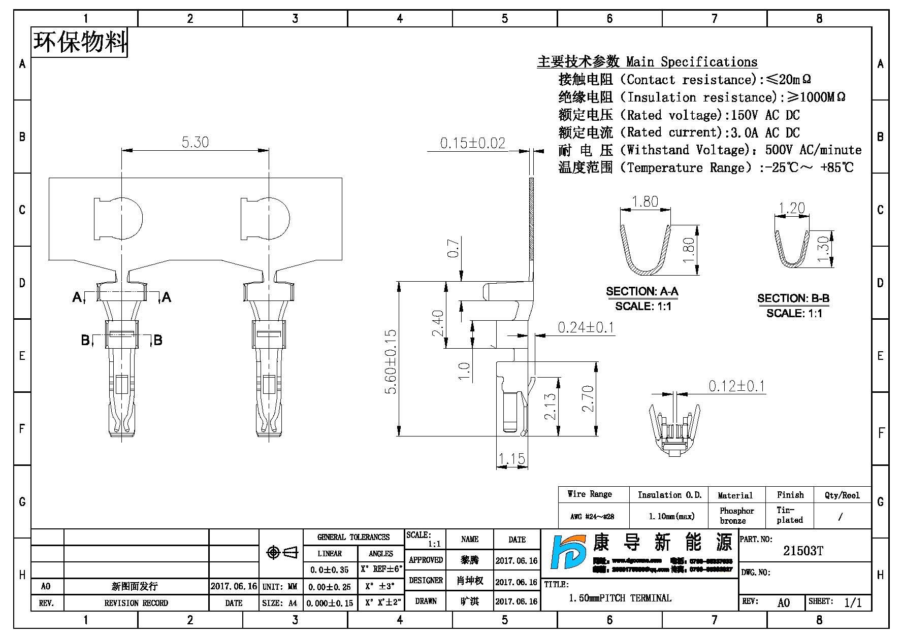規格型號:PH:1.5MM L:5.60MM 1*NP 線端母端子