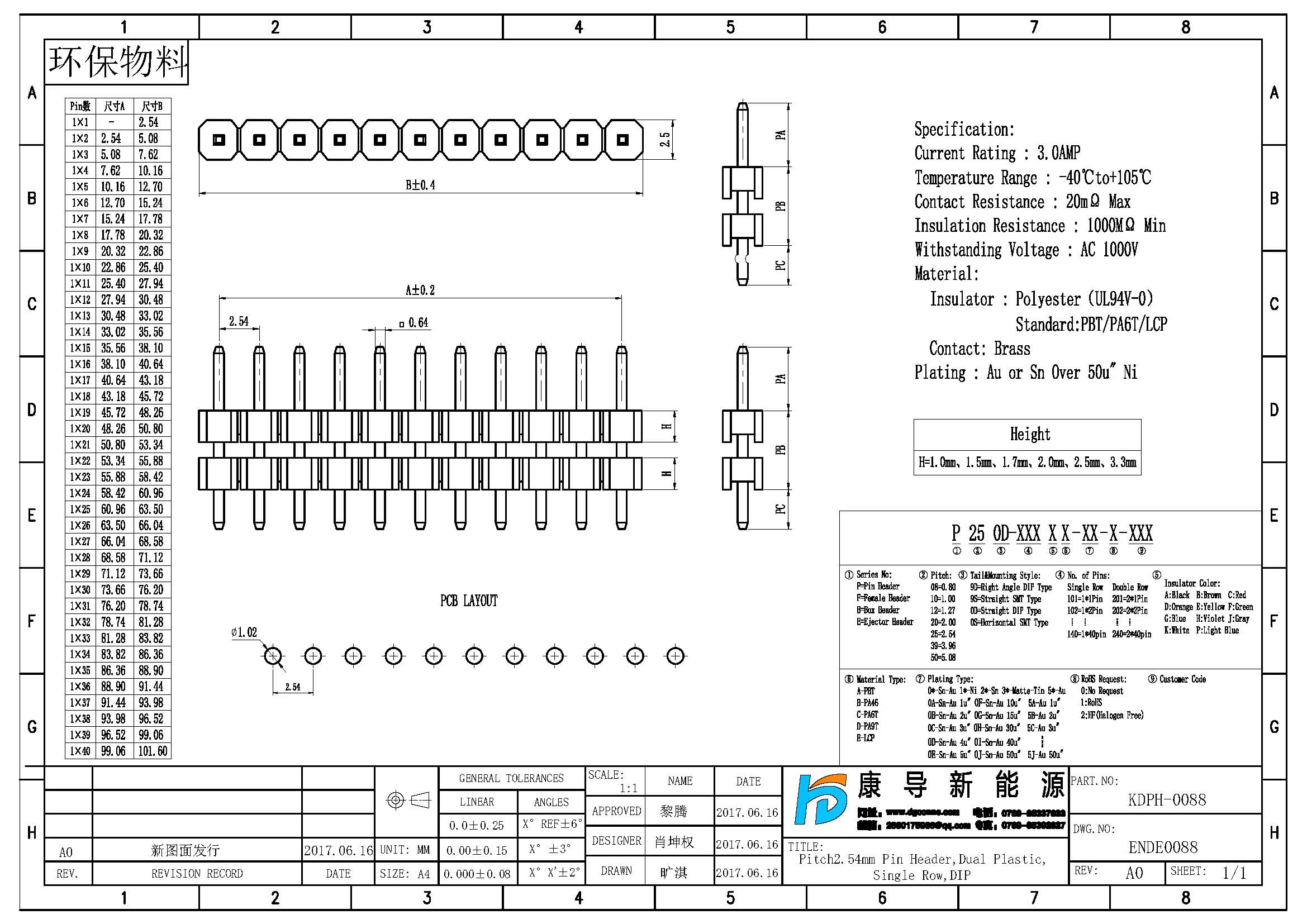 產品行距:2.54MM