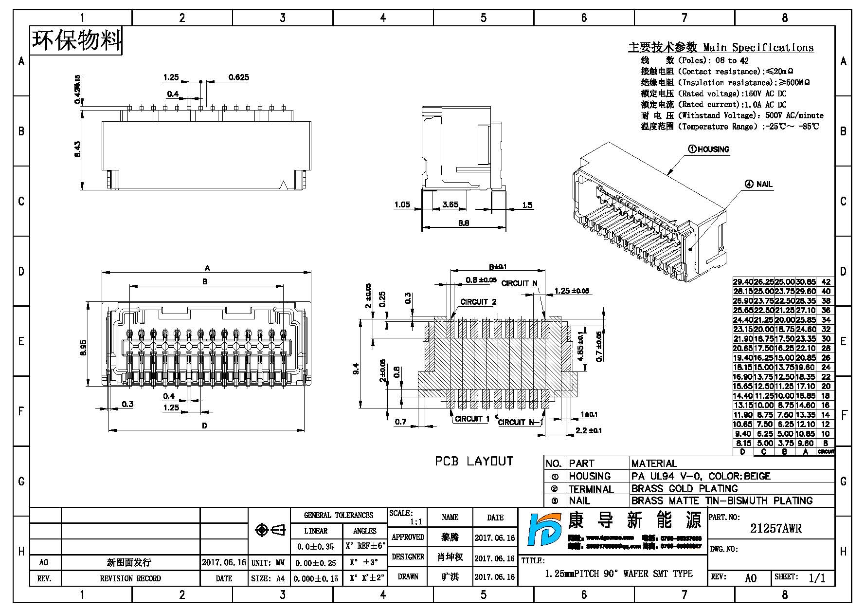 規格型號:PH:1.25MM H:8.95MM 2*NP 臥貼