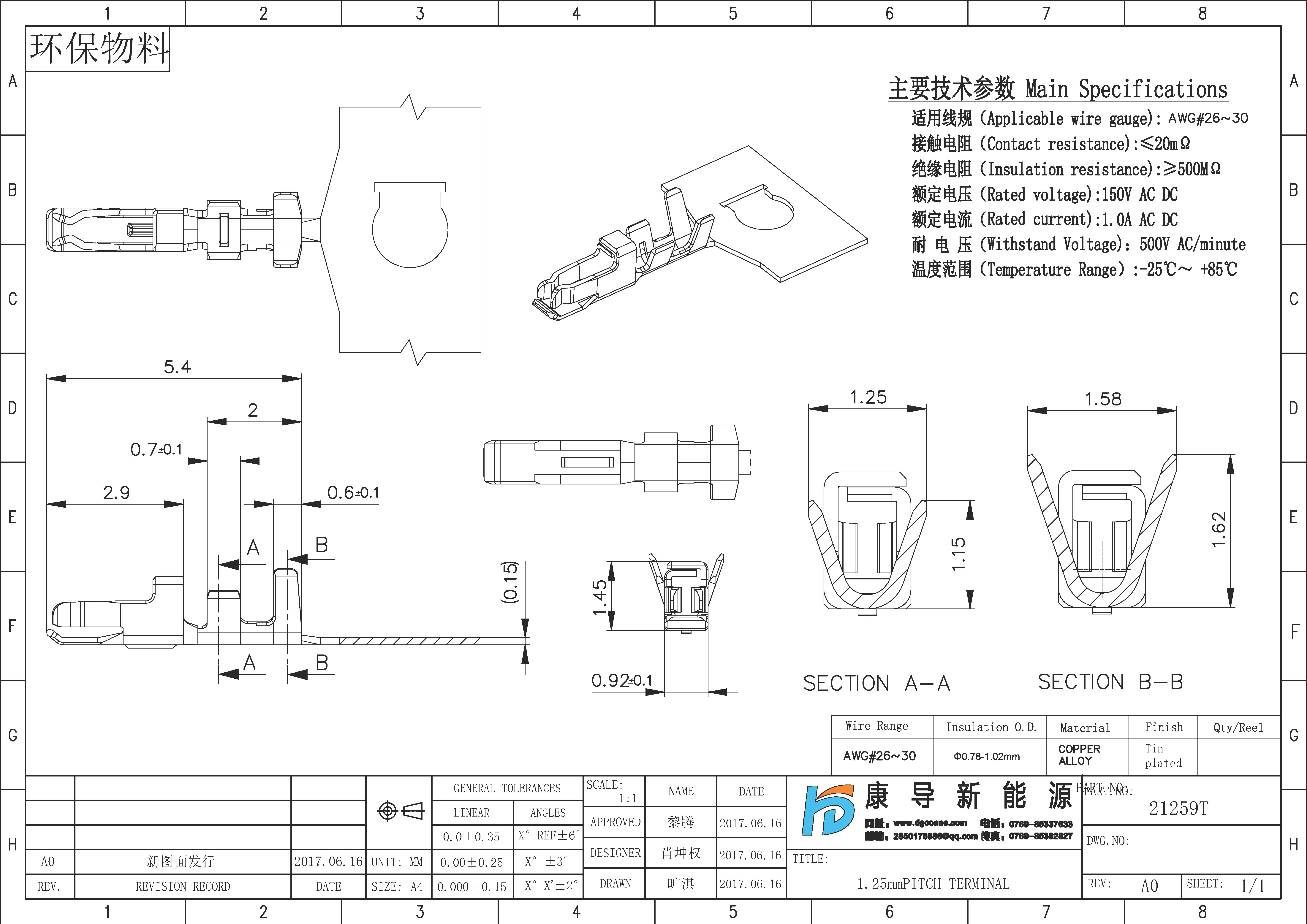 規格型號:PH:1.25MM L:5.40MM AWG26#-AWG30# 線端母端子