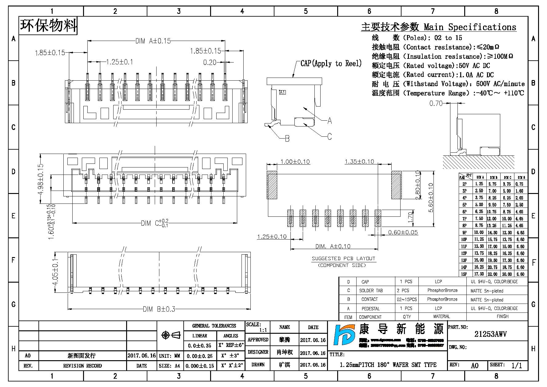 規格型號:PH:1.25MM H:4.05MM 1*NP 立貼